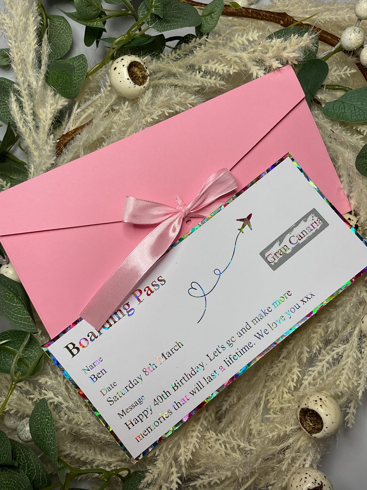 Announce a dream trip or holiday in the most exciting way! This Luxury Personalised Foiled Scratch Reveal Boarding Pass is the perfect way to reveal a birthday trip, anniversary getaway, honeymoon, or family vacation!