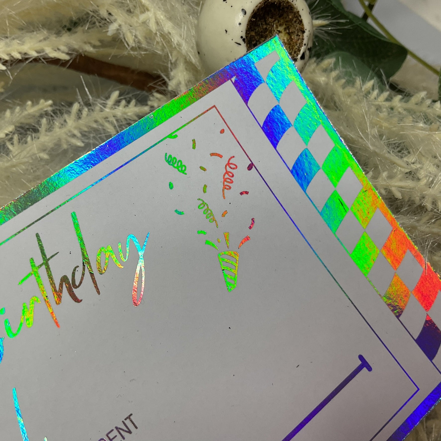 Vibrant Holographic Design – Features a striking holographic foil border and "Happy Birthday" text that shimmers in rainbow colours, perfect for a modern celebration.